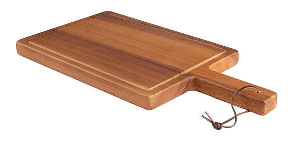 | 天然のアカシア材を使用した持ち運びに便利なハンディングボード。ボードの隅に切り込みを入れ、肉汁等がこぼれ落ちない加工がされております。 |