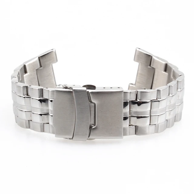 새로운 24 미리메터 실버 손목 부품 스테인레스 스틸 밴드 금속 팔찌 시계 스트랩 남성 시계 밴드 액세서리 시계 줄 시계