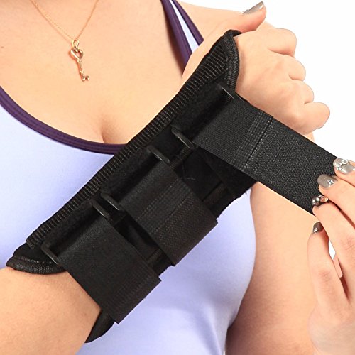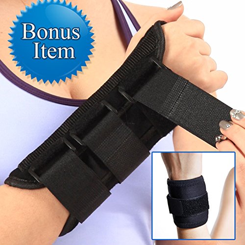 -. Feature : HELPS ALLEVIATE PAIN from existing wrist injuries including: Carpal Tunnel Syndrome, sprains, strains, tendonitis, fractures, arthritis and torn ligaments. / FULLY ADJUSTABLE: Features three adjustable Velcro straps as well as an expandable center. Adjust to fit as tight or loose as you want. / LIGHTWEIGHT, BUT DURABLE: Expandable middle is made of a breathable, mesh fabric. The inside of the wrist brace is made of cushioned material. There are three metal splints that keep your wrist in the ergonomically correct position. / DOUBLE SECURED WRIST SUPPORTS: Features three steel bars that help control wrist flexion. Our splints have extra stitching so your steel bars won't slide or fall out while you are wearing your brace. / Receive a FREE WRIST WRAP with your purchase! The BONUS Wrist Wrap can be worn as a smaller, more discrete wrist support. Wear it while you are working, exercising or performing any daily activity!