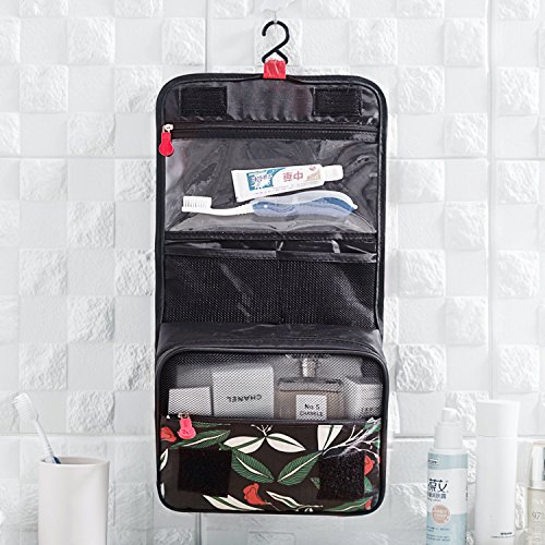Travel cosmetic bag , hanging toiletry bag cosmetic bags makeup bags for women(black flower)