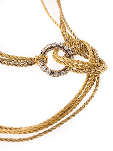 -. Title : Lo Spillo Halskette, vergoldet, mit geknoteter Messing-Schnur mit Strass, 24 Karat