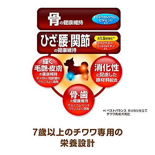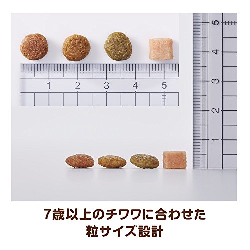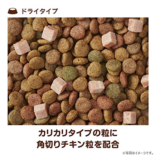 原材料:穀類(トウモロコシ、小麦粉、パン粉、コーングルテンミール、玄米)、肉類(チキンミール、鶏ミンチ、チキンエキス)、魚介類(フィッシュミール、乾燥小魚)、動物性油脂、豆類(大豆、大豆エキス)、野菜類(ビートパルプ、ニンジンパウダー、カボチャパウダー、ホウレンソウパウダー)、ビール酵母、チーズ、ソルビトール、ミネラル類(カルシウム、塩素、銅、ヨウ素、カリウム、ナトリウム、亜鉛)、グリセリン、保存料(ソルビン酸K)、ビタミン類(A、B1、B2、B6、B12、D、E、K、コリン、パントテン酸)、ミルクカルシウム、グルコサミン塩酸塩、フマル酸、着色料(二酸化チタン、赤色106号、黄色4号、黄色5号、青色1号)、酸化防止剤(エリソルビン酸Na、ミックストコフェロール、ハーブエキス)、コンドロイチン硫酸