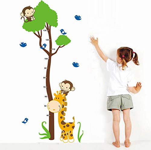-. Title : Wallpark Cartoon Cute Giraffe Birds & Monkeys Climbing Tree Height Sticker, Growth Height Chart Measuring Removable Wall Decal, Children Kids Baby Home Room Nursery DIY Decorative Adhesive Wall Mural
