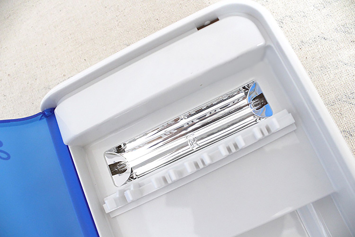 ● By irradiation with ultraviolet rays, the tip of the toothbrush is sterilized