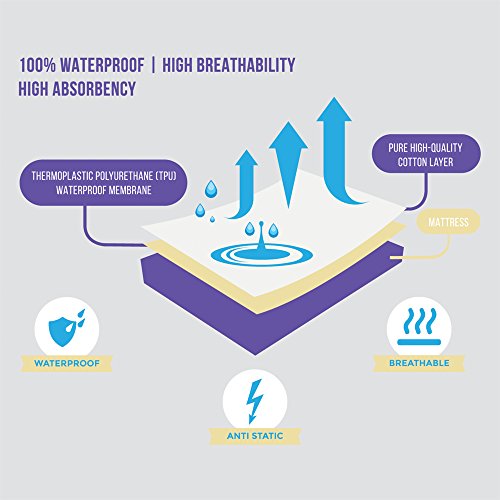 Protects your child's mattress from night-time accidents. Cotton is more absorbent than most other fabrics because of its molecular structure. In humid atmospheres, cotton fabric can absorb 27% of water without becoming damp. It wicks liquid away from your baby, and the 100% waterproof and breathable membrane prevents leaks.
