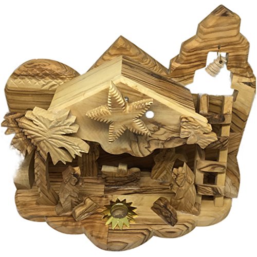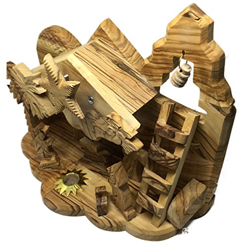 Beautiful 8" Hand Carved Christmas Musical Nativity Set With Bethlehem Star Plays Nice Christmas Music and With Holy Soil , Handmade Hand Carved from the Wood of The Olive Tree, Made At Bethlehem Holy Land