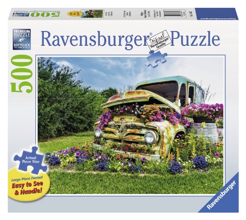 -. Binding : Toy -. Brand : Ravensburger -. Department : Flower Art -. EAN : 0787718865533 -. Feature : Puzzle Measures: 27" x 20" / Large Piece Format - Easy to see & handle / Puzzles are fun! on your own, or with family and friends / Relax from your busy life and build a beautiful image and a new memory / Take a moment to slow down and experience the pleasure of a puzzle -. Genre : strategy -. IsAdultProduct : 0 -. ItemPartNumber : RAV14885 -. Label : Ravensburger -. Manufacturer : Ravensburger -. Model : 14885 -. MPN : 14885 1 -. NumberOfItems : 1 -. PackageQuantity : 1 -. PartNumber : 14885 1 -. ProductGroup : Toy -. ProductTypeName : TOYS_AND_GAMES -. Publisher : Ravensburger -. Studio : Ravensburger -. Title : Ravensburger Flower Truck Large Format Jigsaw Puzzle (500-Piece) -. UPC : 794628964898 -. Warranty : Lifetime warranty against manufacturer's defects