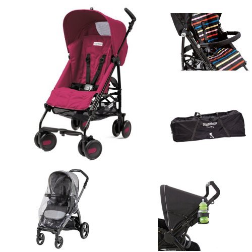 Peg Perego Pliko Mini Stroller, Fleur/Raspberry Bundle