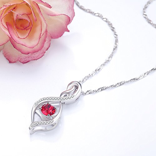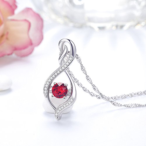 superior quality, 18K white gold plated over sterling silver, this delicate January Birthstone Garnet Swarovski Infinity Love Symbol Pendant necklace with 20" Singpore chain will never let you down.