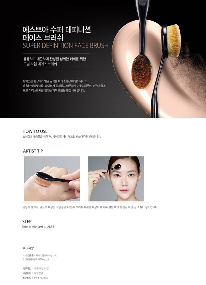 椭圆形刷头设计,可以针对脸部狭小区域涂抹,照顾到脸上的每一个细节