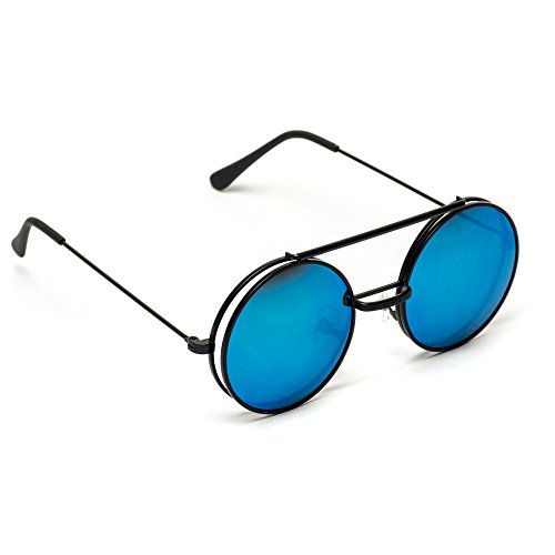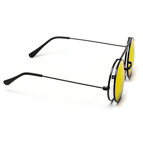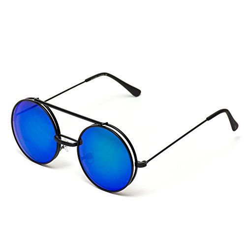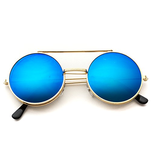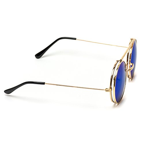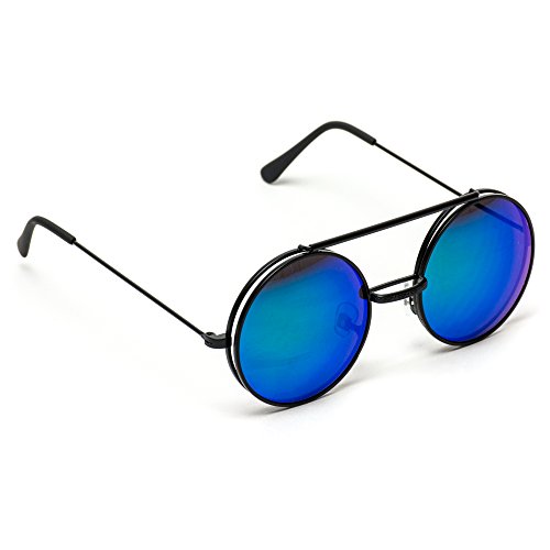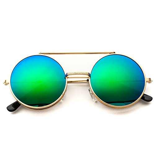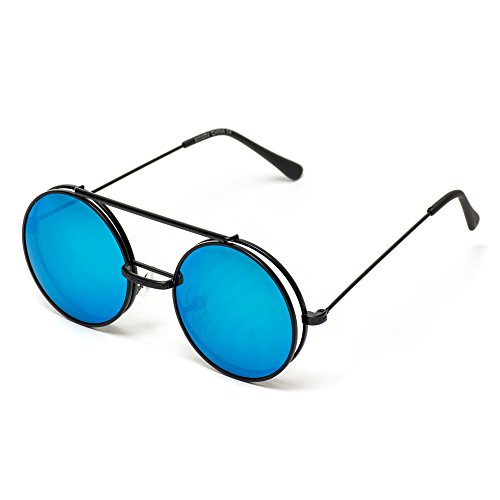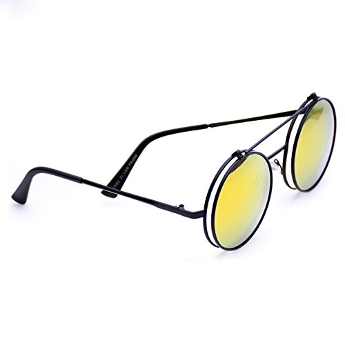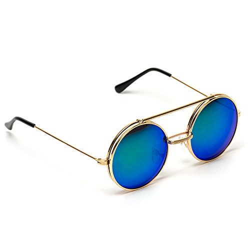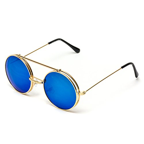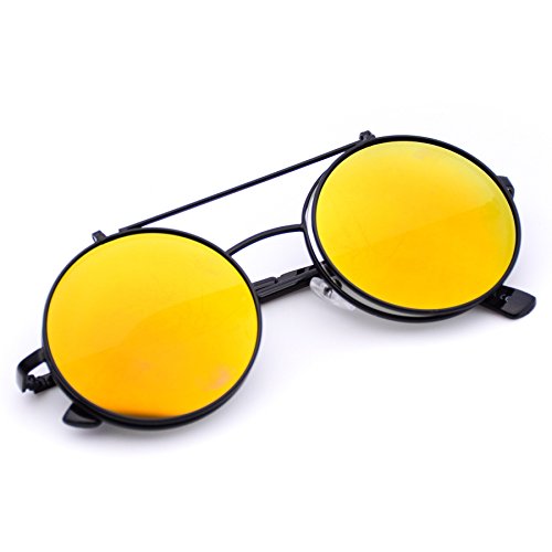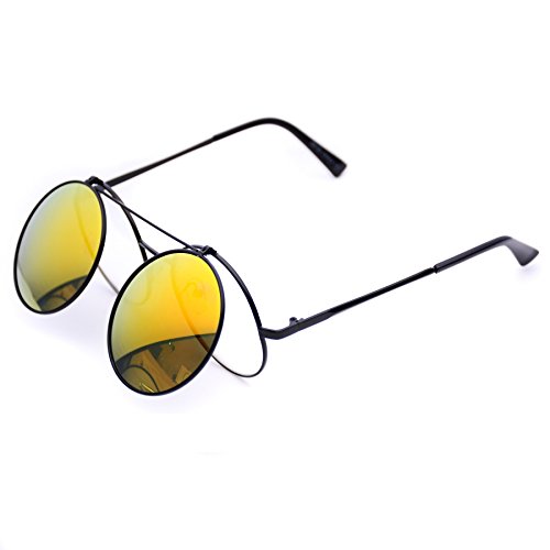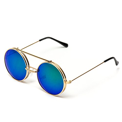 | WearMe Pro - Retro Mirrored Metal Flip Up Round Circle Frame Sunglasses |