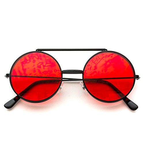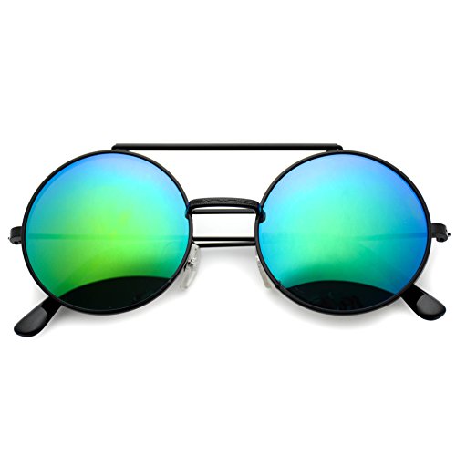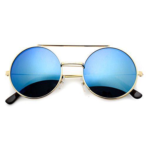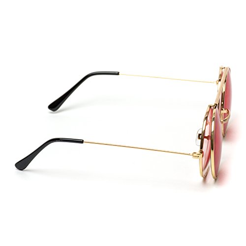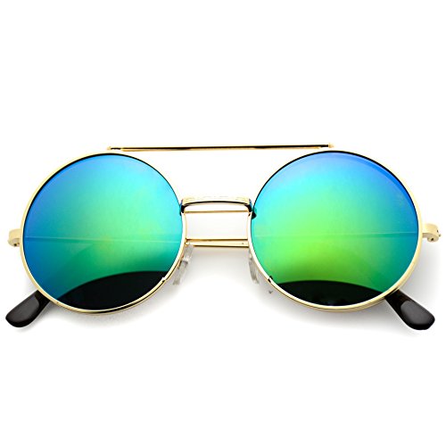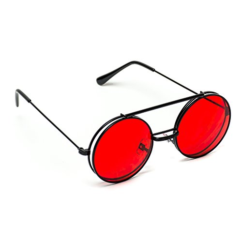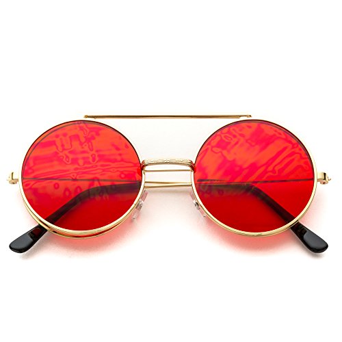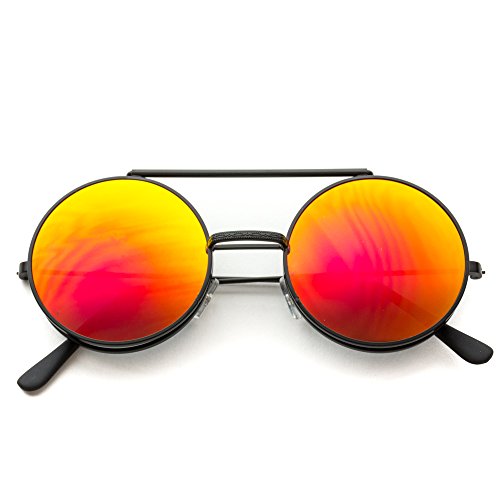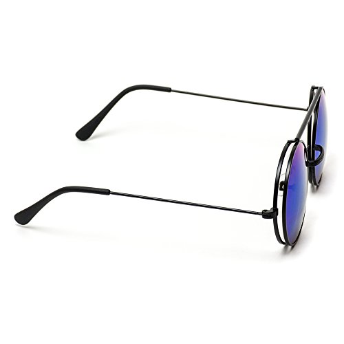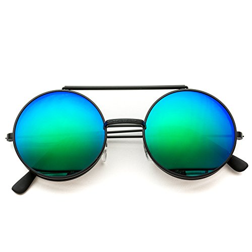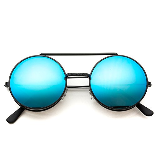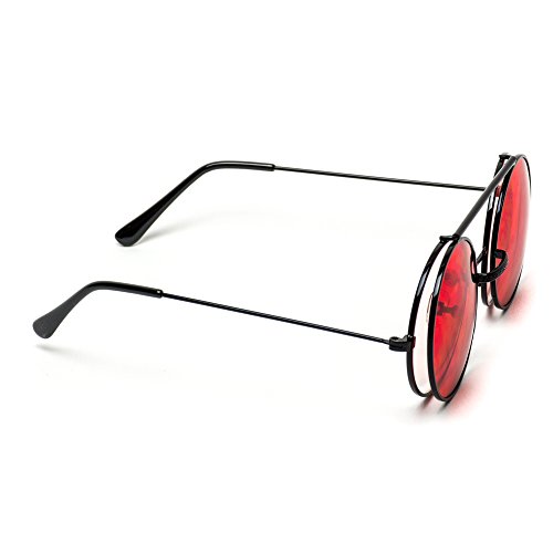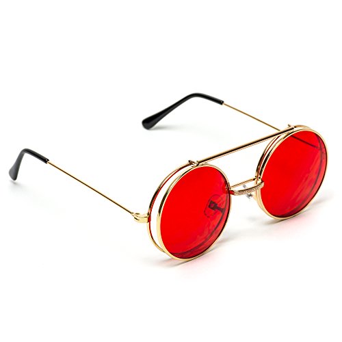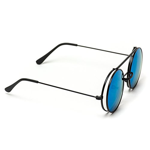 | WearMe Pro - Retro Mirrored Metal Flip Up Round Circle Frame Sunglasses |