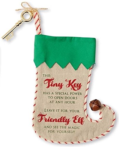 Elf Linen Miniature Christmas Stocking with Key