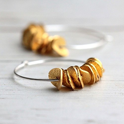 -. Title : Small Sterling Silver Hoop Earrings with Gold