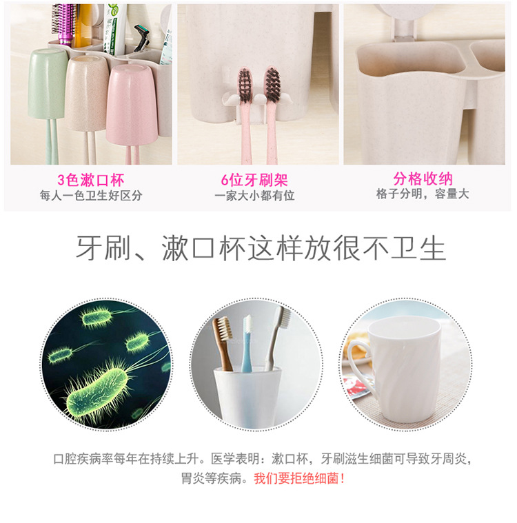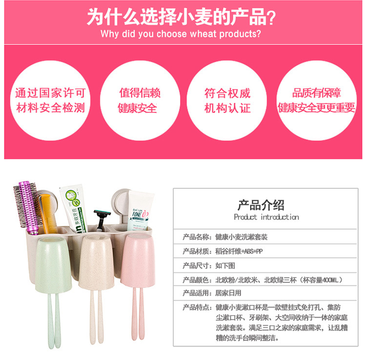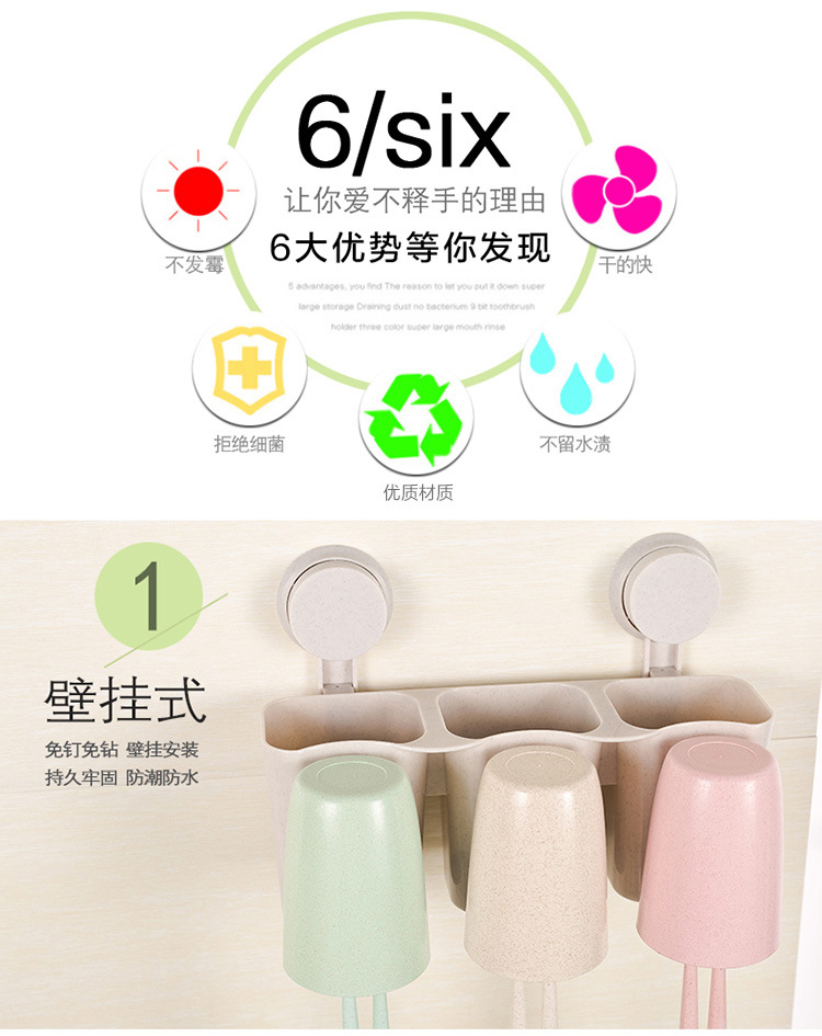 • 商品名称:小麦秸秆粘贴式牙刷架洗漱套装(785B)