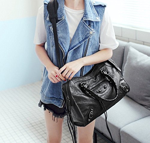 Product Description Top Zipper Closure Size: About 38cm (W)x 23cm(H)x 10cm(D)/15.0in (W)x 9.1in(H)x 3.94in(D) Shoulder belt: about 13cm high, with a long shoulder Inside: 1 zipper pocket and 2 open pocketes; Outsize with 1 zipper pocket. Material: Faux Leather/ PU leather Color available: Black/ Rose / Purple /Blue 9 colors Type :Shoulder Bag/ Cross-body Bag Packing List:1 x Bag