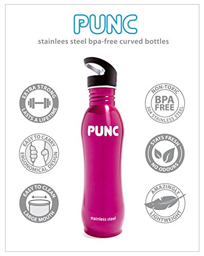 -. Title : PUNC 750ml Blue Curved Stainless Steel Sports Water Drinks Bottle With Gift Case