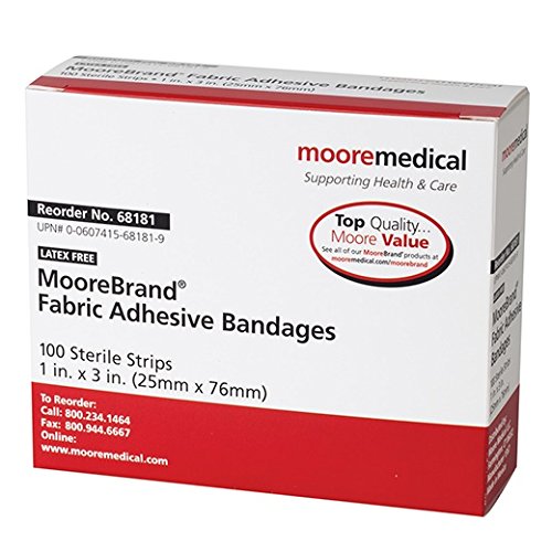 -. Binding : Health and Beauty -. Brand : MOORE Medical -. Color : Tan -. Feature : MooreBrand Sheer Plastic Adhesive Bandages / Item Model Number: 68186 / Mini, 3/8 x 1-1/2 Inch, Sterile. / High quality, high value bandages. / Item is sold by 1/Box of 100 -. IsAdultProduct : 0 -. Label : Moore Medical -. Manufacturer : Moore Medical -. MPN : 68186 -. PackageQuantity : 1 -. PartNumber : 68186 -. ProductGroup : Health and Beauty -. ProductTypeName : HEALTH_PERSONAL_CARE -. Publisher : Moore Medical -. Size : 3/8 x 1-1/2 Inch -. Studio : Moore Medical -. Title : Moore Medical Adhesive Bandages 3/8" X 1.5" Sheer Plastic Strips - Box of 100
