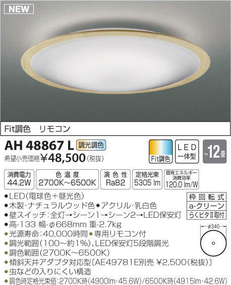 ●調色時定格光束値:2700K時(4900lm・45.6W)/6500K時(4915lm・42.6W)