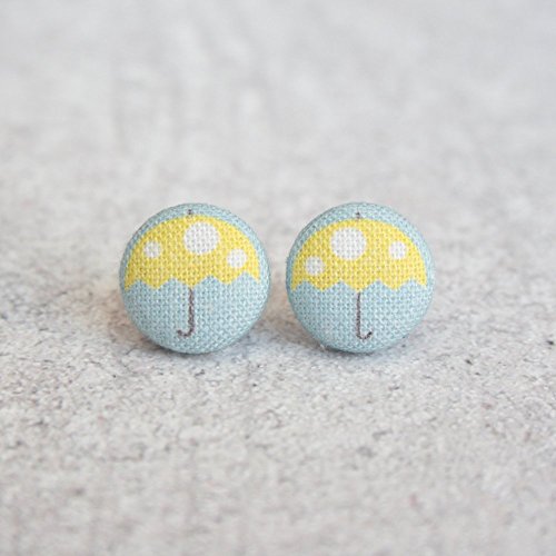 -. Title : Yellow Umbrella Fabric Button Earrings