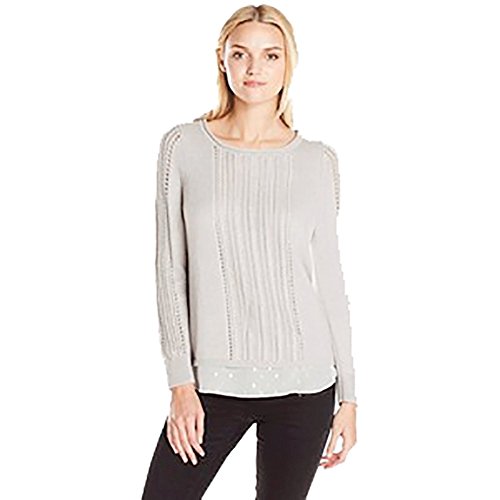 Lucky Brand Plus long sleeve pullover sweater with inset woven detail