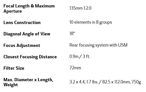 Canon EF 135mm f/2L USM Lens for Canon SLR Cameras - Fixed