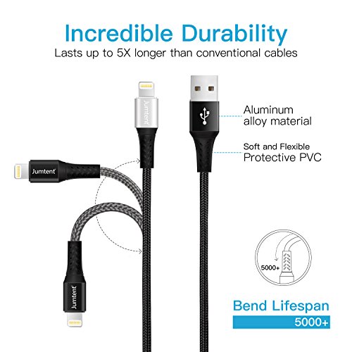 Studio : Jumtent Publisher : Jumtent Binding : Wireless Phone Accessory Product Description Features: - Lengths Choices, Multiple Usage 4Pieces!3ft, 2x6ft and 10ft length cable in one bag, meet different occasions you may need. different length for using on sofa, in bed, in car and some other places. - Bending Resistance 5000 times bending test ensure the cable will not be broken or cracked easily even after long time. - Tangle Free No Wrap No more knots, the nylon braided-shield is a protective mesh which confers flexibleprotection Tangle Free. TPE jacket and the High Resistance Insulation protect the durable copper wires. - Charging and data transfer two in one Supports iOS users daily life, Jumtent cable featurescomplete iTunes,data syncing and charging with maximized signal quality. Increases durability, faster charging, faster data transfer and compatibility with almost all cases.