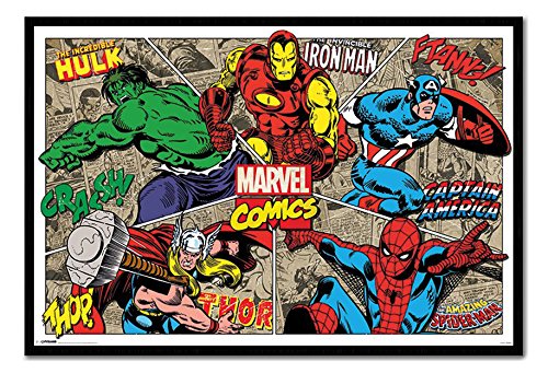 -. Title : Marvel Comics Character Burst Poster Magnetic Notice Board Black Framed - 96.5 x 66 cms (Approx 38 x 26 inches)