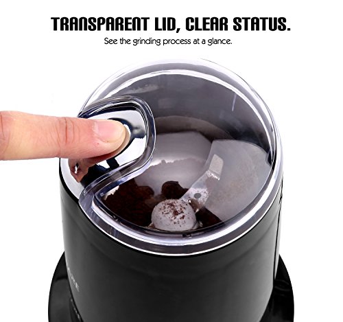 EXCELLENT FEATURES: With a transparent lid, you can watch what's going on inside this coffee grinder, providing you with a clear view and convenient for you to control the coarseness easily.