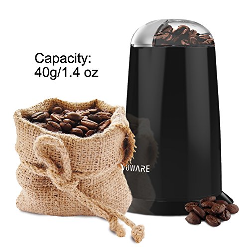 EASY OPERATION: The lid is easy to open, and the blades pulverize with precision from whole to coarse or fine in seconds, depending on how long you press the "push button". Grinds up to 1.4 ounces (40g) of coffee beans once.