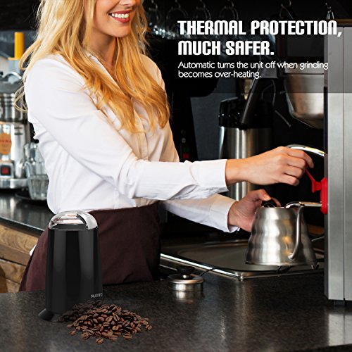 Nuovoware Electric Coffee Grinder: This Nuovoware Coffee Grinder is crafted with premium materials, producing a blend of elegance, durability and functionality. Choose your coffee beans from all variety and grind them all to the desired satisfaction!