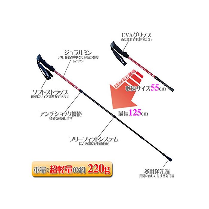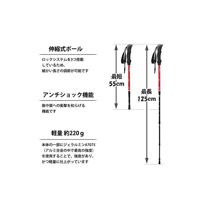 원본상품명: 超量&コンパクト納仕 アルミ トレッキングポル 2本セット アンチショック機能付