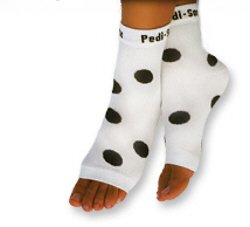 -. Binding : Misc. -. Brand : Pedi-Sox -. Feature : You will receive (1) Pedi-Sox pair / One size fits most socks that are great for home and spa use while locking in moisture. / Can be worn with flip-flops and allow freedom for your toes. / Keep feet warm, cozy, and clean during pedicure service. / Perfect for applying your own nail polish. -. Label : Pedi-Sox -. Manufacturer : Pedi-Sox -. PackageQuantity : 1 -. ProductGroup : Beauty -. ProductTypeName : BEAUTY -. Publisher : Pedi-Sox -. Studio : Pedi-Sox -. Title : Pedi-Sox Polk A Dot