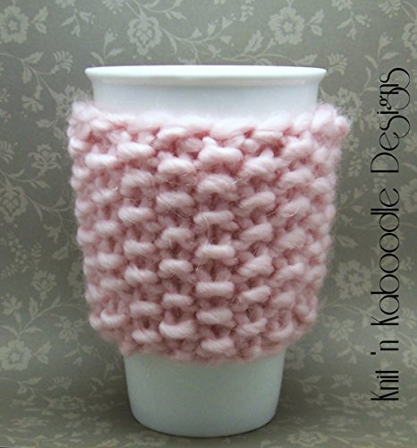 Product Description I knitted this beverage sleeve in a "Bulky Seed Stitch" design. One of my most popular designs. In most cases I use soft 100% wool yarn and in some cases I also use wool blends. For the best care spot clean, machine wash cool, machine dry low. The fiber content makes the cozy a wonderful insulator as well as a hand protector. It works well with both cold and hot beverage cups. It does a good job at catching those pesky drips, too! All of my cozies have non slip dots on the interiors so they work on all surfaces and are guaranteed to grip your cup. **Cup cozy set includes a chic reusable, durable, plastic 16-oz. double-wall travel mug with screw-on, flip-top lid. The double-wall design helps keep drinks warm or cold and the textured non-slip sleeve helps you keep a grip on hot beverages without the burn. If you would like more than one, such as a set of four, just let me know. I am happy to knit up as many as you need. Or if you would prefer a different color, please take a look at the color chart and choose your favorite. Please allow additional shipping time in either case. Thank you! KLM 0
