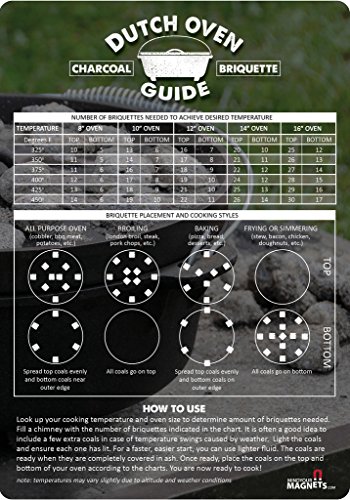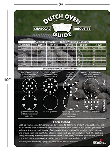 -. Brand : Mind Your Magnets -. Color : Multicolored -. Feature : PROVEN RESULTS: Quickly determine the charcoal briquettes quantity and placement for any dutch oven cooking meal! The charcoal briquette placements on this guide have been tested and tried and have been claimed very successful. / CONVENIENT: This cheat sheet can travel with you wherever you go for a quick reference. Stick it to your RV, trailer, truck, or camping stove for easy access! / WEATHERPROOF: Heavy duty fridge magnets (30 millimeters). This heat and humidity proof magnet is resistant to sun fading and water. Easy to clean and wipe off after cooking. / PERFECT GIFT: Great RV camping gifts for the outdoor cooking enthusiast! / USA MADE -. Label : Mind Your Magnets -. Manufacturer : Mind Your Magnets -. ProductGroup : Kitchen -. ProductTypeName : KITCHEN -. Publisher : Mind Your Magnets -. Studio : Mind Your Magnets -. Title : Dutch Oven Charcoal Briquettes Magnetic Cheat Sheet / Briquette Temperature Conversion Chart - The Perfect Fridge Magnet to Add To Your Dutch Oven Cookbook, Camping Gear and RV Accessories!