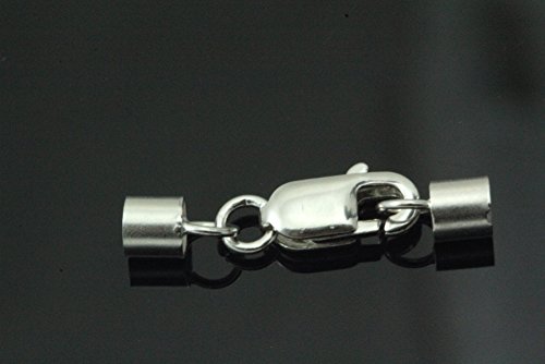 5pcs x .925 Sterling Silver 3mm Leather Cord End Cap 23mm W/Lobster Clasp #124