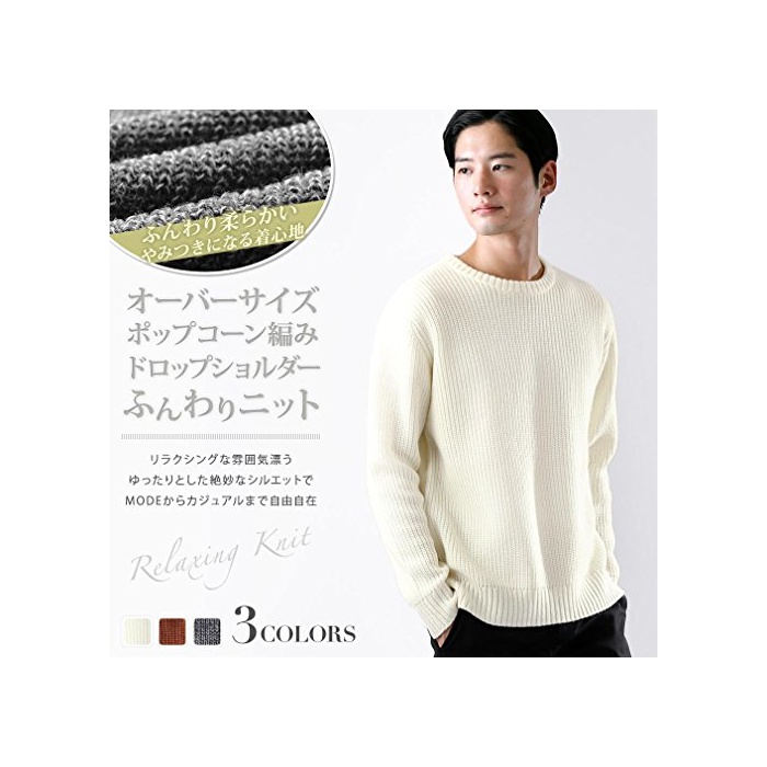 원본상품명: (モノマト) MONO-MART オバサイズ スリット ポップコン編み ニット セタ ウルブレンド メンズ オフホワイト Lサイズ