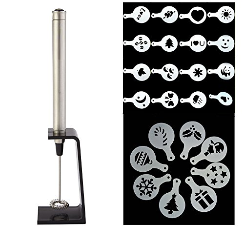 - Package including: 1pcs Milk Frother with mounting bracket, 1 set (16pcs) Flower Stencils and 1 set (8pcs) Christmas Stencils.