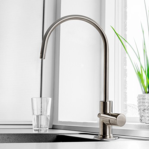 iSpring GA1-BN 6.5"x11" 14oz Solid Brass Heavy Duty Water Filter Designer Faucet - EU Style High-Spout, Brushed Nickel