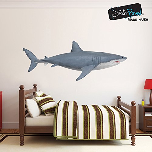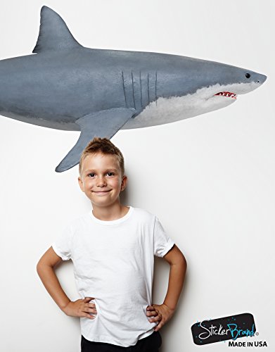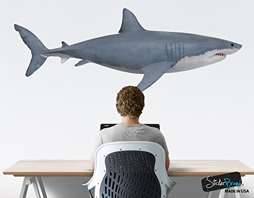 Great White Shark Wall Decal Peel and Stick Giant Life Size (4.2ft long) Graphic Sticker 19in Tall X 50in Wide #6084s (Facing Right)