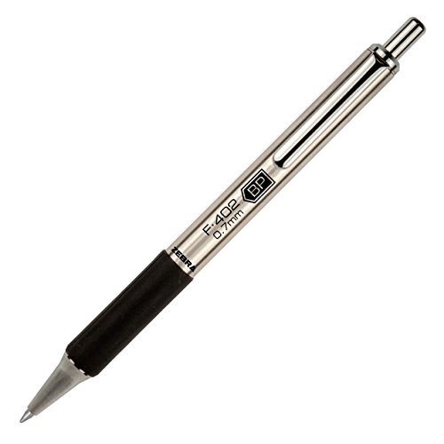 Zebra F-402 Stainless Steel Retractable Ballpoint Pen, 0.7mm, Black, 12-Pack (29210)