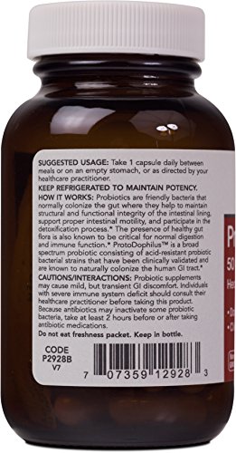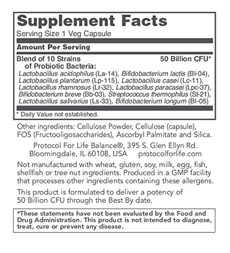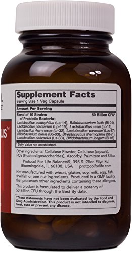 HOW IT WORKS: ProtoDophilusTM is a broad spectrum probiotic supplement with 50 Billion live organisms per capsule. Consisting of probiotic bacterial strains that are known to naturally colonize the human GI tract, ProtoDophilusTM can aid in maintaining healthy flora populations throughout the entire intestinal tract.* FOS is included to help maintain the viability and promote the growth of Acidophilus and Bifidus organisms*. This product is formulated to deliver a potency of 50 Billion Organisms through the Best By date.Protocol For Life Balance® is an A-rated GMP manufacturer of pharmaceutical grade dietary supplements created for healthcare practitioners. Our product line is comprised of effective, science-based formulations intended to address common nutrient deficiencies and support healthy physiological function. These formulations are based on the latest advances in nutritional science and incorporate trademarked ingredients of the highest quality. Our serving sizes are based on doses used in clinical trials and other published data, and the ingredients used in our products have been tested for efficacy in clinical trials and laboratory studies.