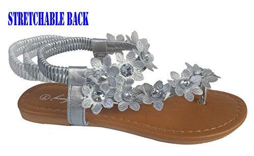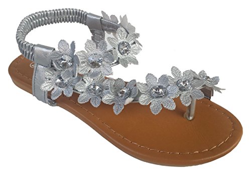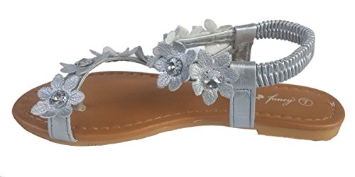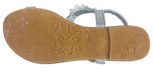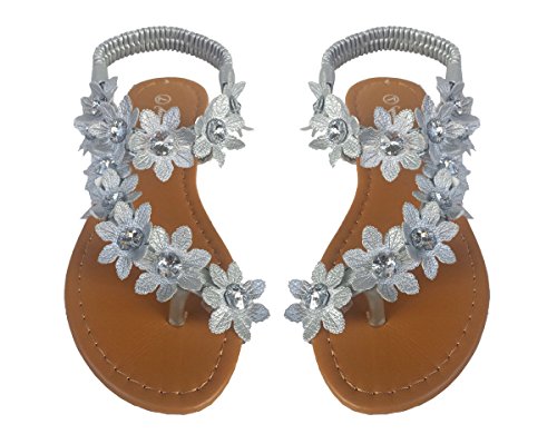Elegant Women's Fashion Silver Color Hawaiian Flowers Gladiator Flat Sandals