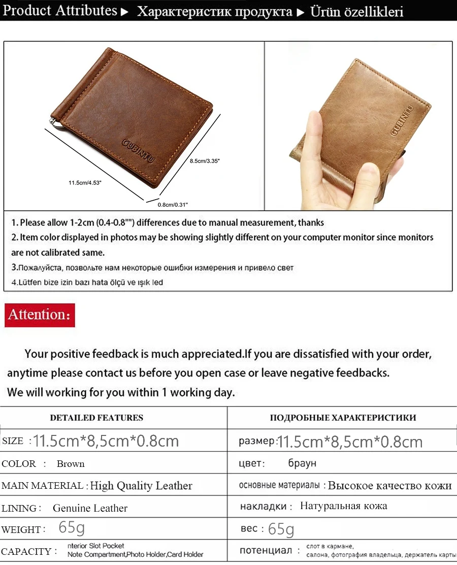 Material Composition:Genuine Cowhide Leather Wallets Men
