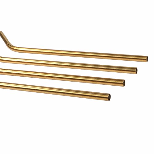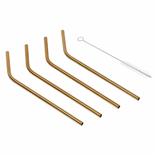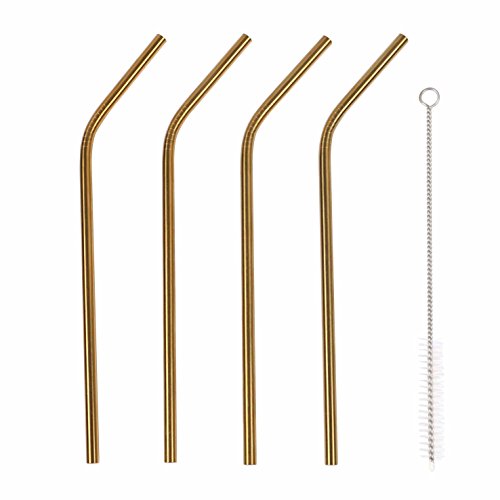 Geeklife Stainless Steel Bent Drinking Straws ,Set of 4 with 1 Free Cleaning Brush,Gold