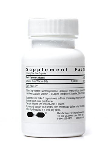 -. Binding : Health and Beauty -. Brand : Thorne Research -. Feature : •Thorne's vitamin D is pure vitamin D without hidden ingredients - like lactose, BHT, BHA, sodium benzoate, and sorbic acid - that can be detrimental to sensitive individuals / •supports cardiovascular, immune, and bone health* / 60 Vegetarian Capsules (2 month supply) -. Label : Thorne Research -. Manufacturer : Thorne Research -. PackageQuantity : 1 -. ProductGroup : Health and Beauty -. ProductTypeName : HEALTH_PERSONAL_CARE -. Publisher : Thorne Research -. Studio : Thorne Research -. Title : Thorne Research - Vitamin D - Pure D3 Health Supplement