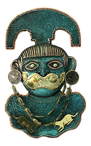 NOVICA Decorative Archaeological Copper and Bronze Mask, Green 'The Lord Of Sipan'