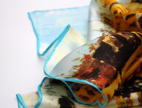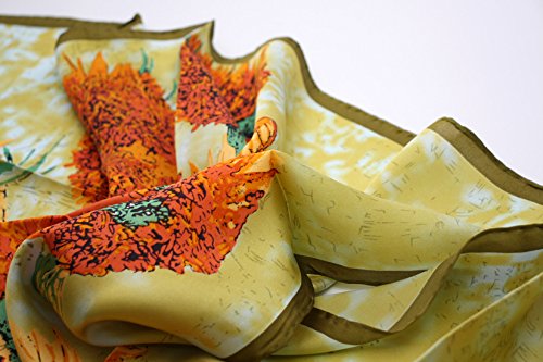 " Material " = " Price" We are honest to sell 100% 12-momme luxurious charmeuse satin silk. ?Our Silk scarves ?has a silkier, softer and more vibrant surface than satin ones, making a perfect canvas to preserve the original art colors .? ?And silk scarves range from 5 ?, 10 and ?12 momme. Our 12-momme silk scarf is ?thicker than the 10-mom one, and also better than it . So the price is different. ?The more thicker , the more better feelling you will get. Scarf's edge is hand rolled by skilled workers . We ?use high-quality and eco-friendly dyes ?to the protect the ?environment and keep the colors .. Dimension: 34 inches W x 34 inches L ?(about ?90 cm ?* 90 cm ) ? ? ? ? ? ? Care Instruction: Dry clean or Hand wash It's ?worth to shop in Vden . ?Best quality , best ?price ! ?Honest ?! 0 |