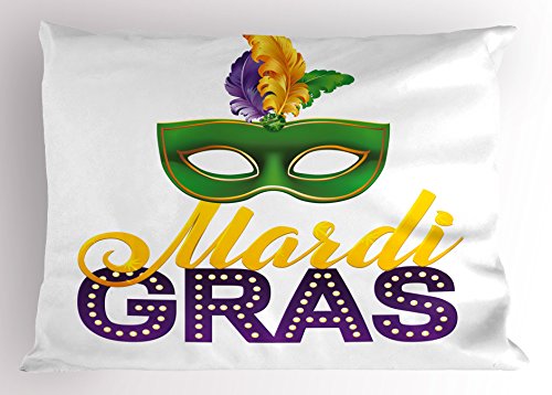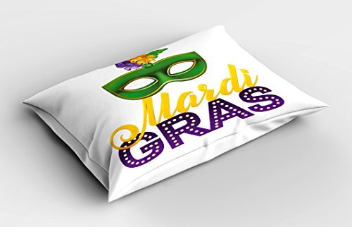 (Ambesonne)/Bedding Bath/Bedding/DIRECT FROM USA/Mardi Gras Pillow Sham by Ambesonne, Stylized Calligraphy and Typography Carnival Mask with Fea...