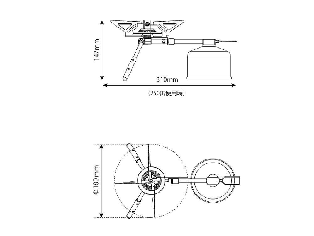 Since the erect type stove has a height with respect to the bottom surface and the separation type stove has the property that the main body and the gas cartridge will stretch each other, when cooking on rough grounds or rough ground such as gravel, both are stable